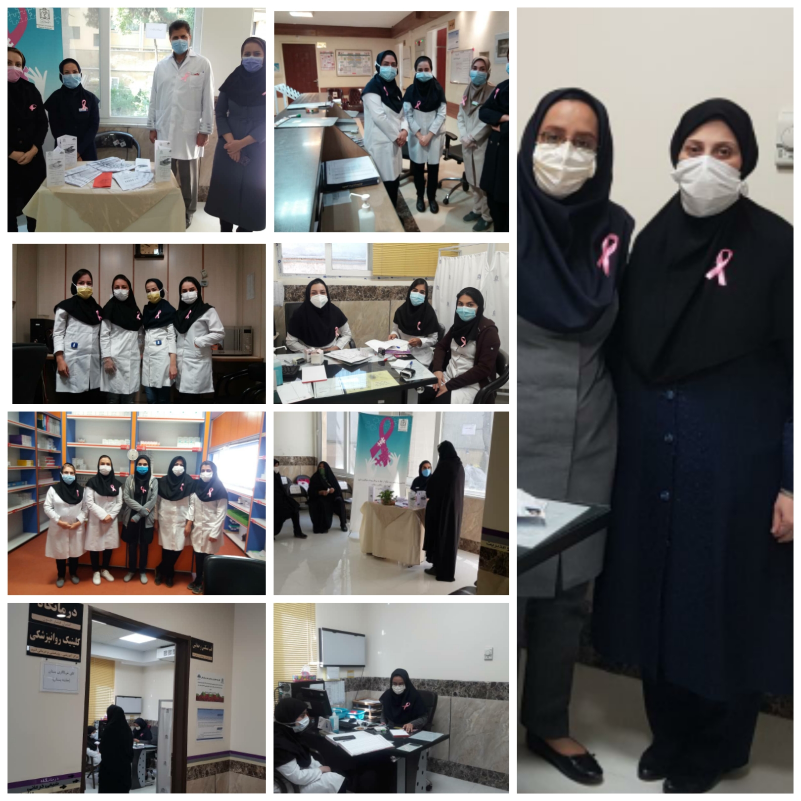 بمناسبت نهم مهر ماه روز جهانی آگاهسازی سرطان پستان و اهمیت آن امروز برنامه غربالگری سرطان پستان بصورت رایگان برای پرسنل و مراجعین در بیمار ستان امید انجام شد. این برنامه که در محل درمانگاههای بیمارستان امید اجرا گردید که شامل استقرارایستگاه آموزش سلامت و معاینه بالینی توسط متخصص جراحی عمومی بود. در ایستگاه سلامت آموزش های مرتبط با سرطان پستان همراه با پمفلت های آموزشی توسط پرستاران خبره ارائه شد. همچنین معاینه بالینی توسط خانم دکتر سرکرده متخصص جراحی عمومی و عضو هیات علمی دانشگاه انجام گردید. همچنین با توجه به اهمیت موضوع آگاهی از سرطان پستان همه پرسنل بیمارستان بصورت نمادین روبان صورتی بر روی لباس هایشان نصب نمودند.