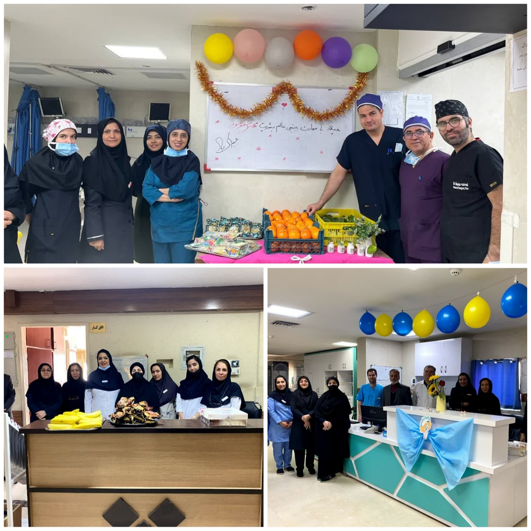 همچنین به این مناسبت همکاران بیمارستان بخشهای محل خدمت خود را آذین بندی کرده بودند و با کمک خیرین با کیک و میوه از مراجعان پذیرایی میکردند. از دیگر برنامه های فرهنگی این روز می توان به برپایی ایستگاه صلواتی در محوطه بیمارستان امید اشاره کرد که با چای و بیسکوییت از مراجعین پذیرایی شد.