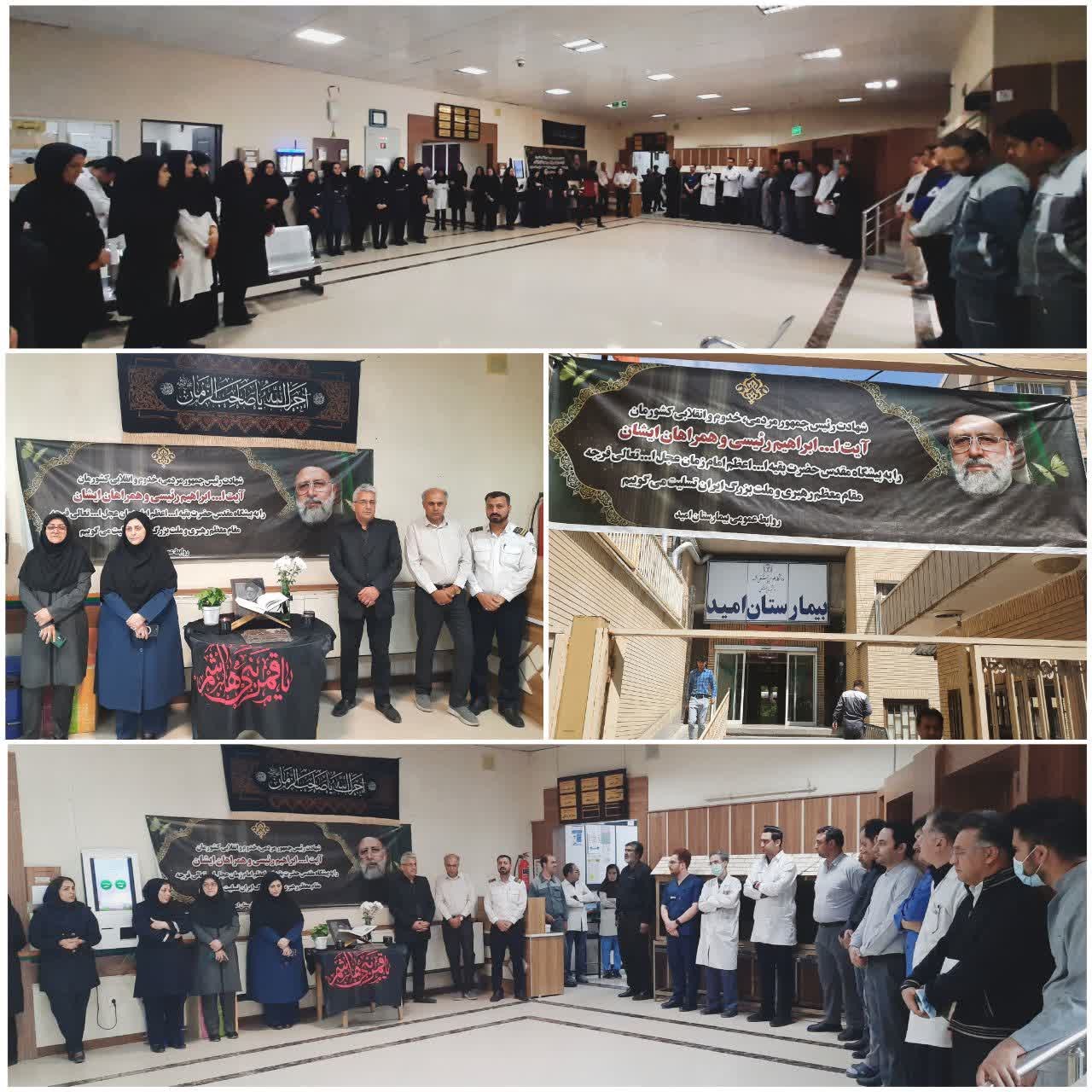 به گزارش روابط عمومی بیمارستان امید ، مراسم گرامیداشت شهادت حجت الاسلام و المسلمین سیدابراهیم رئیسی رئیس جمهور محترم و همراهان از جمله دکتر امیرعبداللیهان وزیر امور خارجه ،آیت الله آل هاشم امام جمعه تبریز و دکتر مالک رحمتی استاندار آذربایجان شرقی بعد از اقامه نماز ظهر و عصر مورخ 1 خرداد 1403با حضور ریاست ، مدیریت و جمع زیادی از کارکنان در لابی بیمارستان برگزار شد. قرائت پیام تسلیت رئیس دانشگاه علوم پزشکی و همچنین مداحی و مرثیه سرایی از برنامه های اجراه شده این مراسم بود.
