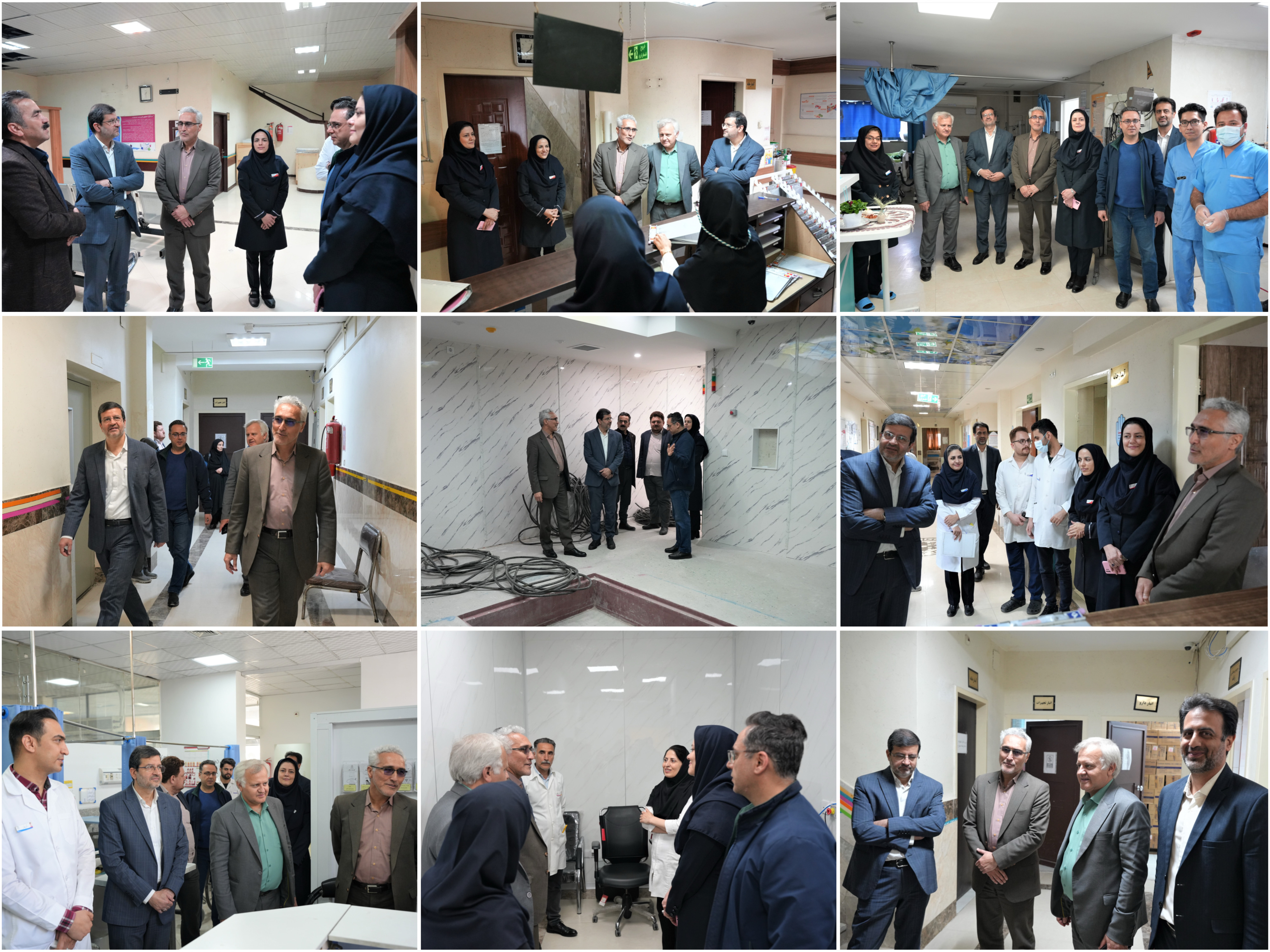 در این بازدید، دکتر محمد دهقانی فیروزآبادی (معاون درمان)، دکتر محسن تفقدی (معاون پژوهش و فناوری) و دکتر رضا وثوقیمقدم (مدیر امور بیمارستانی و تعالی خدمات بالینی) از بخشهایی مانند اورژانس، شیمیدرمانی، ICU، جراحی، اندوسکوپی، سایت رادیوتراپی، انبار دارو و تجهیزات، آزمایشگاه و سایر واحدهای درمانی و پشتیبانی بازدید کرده و در جریان وضعیت ارائه خدمات قرار گرفتند.