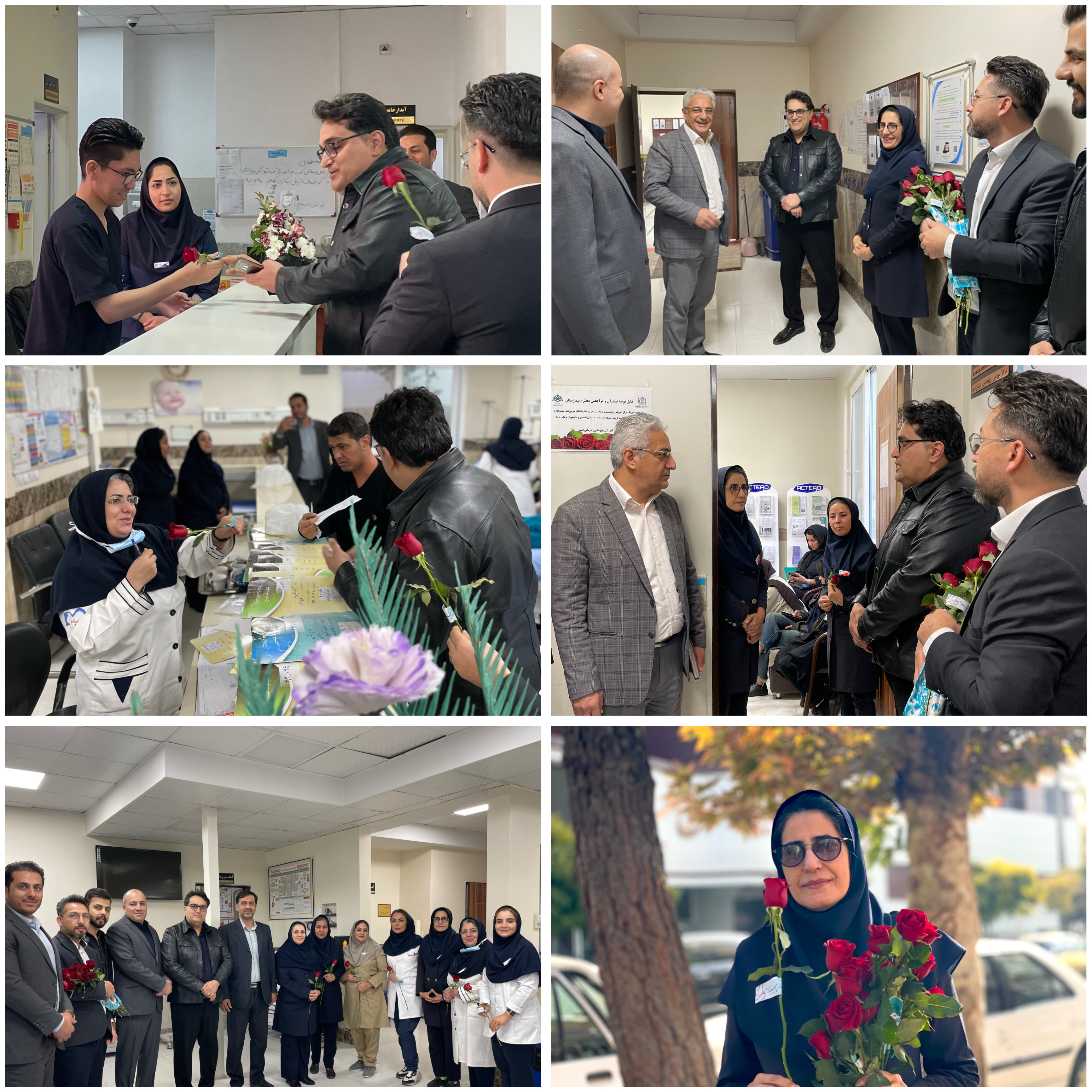 در جریان این بازدید، میهمانان ضمن حضور در بخشهای مختلف، با پرستاران و کادر درمان دیدار کرده و با اهدای گل و یادبود، این روز خجسته را به آنان تبریک گفتند.